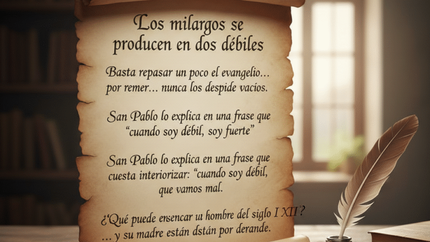 Basta repasar un poco el evangelio para darse cuenta de que los milagros de producen en los débiles, y no en los fuertes. Al contrario, a los fuertes los despide…